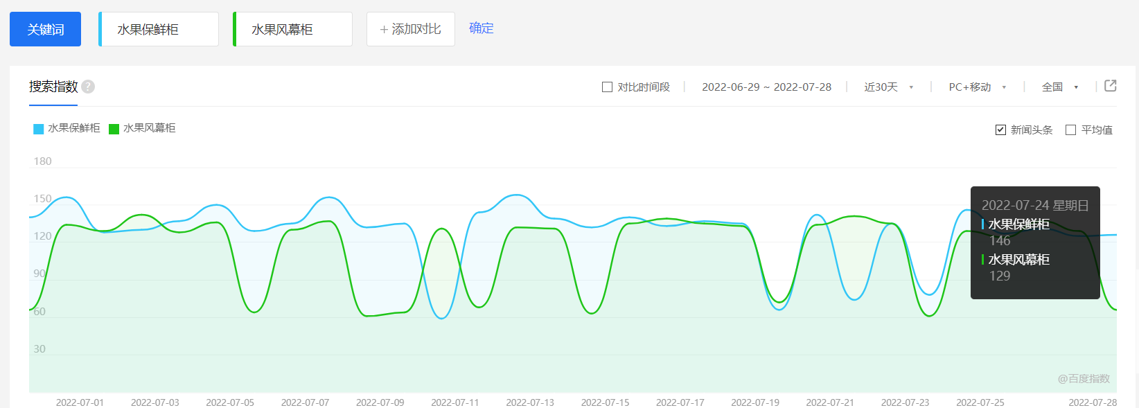 水果保鲜柜、水果风幕柜有指数,其他的没有指数。选择你水果保鲜柜、水果风幕柜组合成关键词。如下: