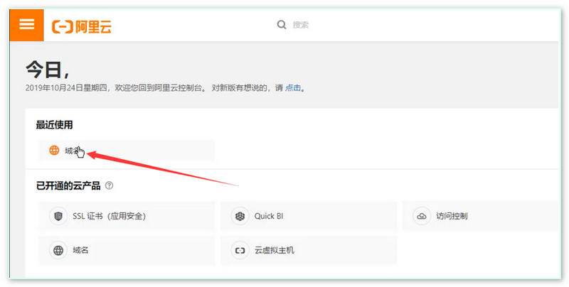 5.同样的在我们阿里云首页这里,点击云虚拟主机。