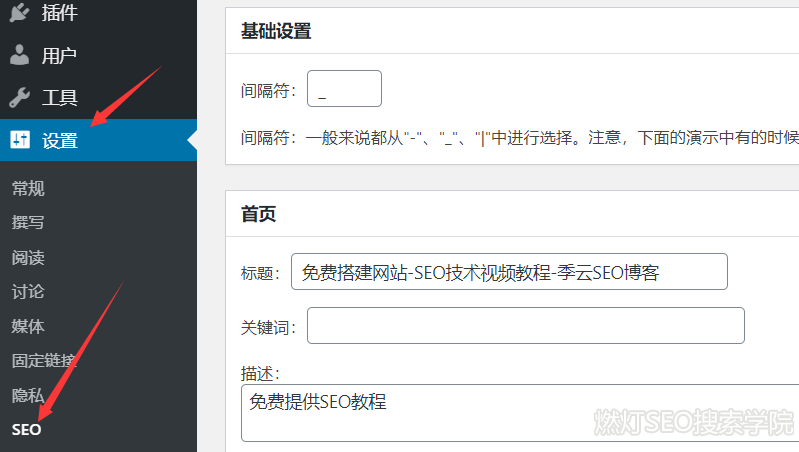 我们先设置首页标题,点击“设置”> SEO,就进入了TDK设置界面。